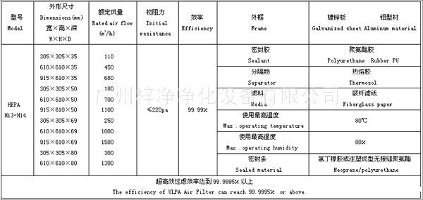 4)高效空气过滤器过滤效率(EN1882):95%-99.999995%。
