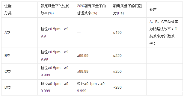 4)空气过滤器应符合防火要求,高效空气过滤器按耐火程度分为三级: