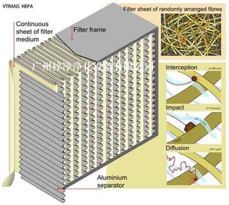 高效过滤器结构采用超细玻璃纤维纸作滤料,胶板纸、铝膜等材料作分隔板,与铝框、镀锌铁框等胶 合而成。具有过滤效率高,阻力低,容尘量大等特点。