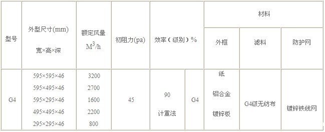 ●过滤级别:G4(EN779)。