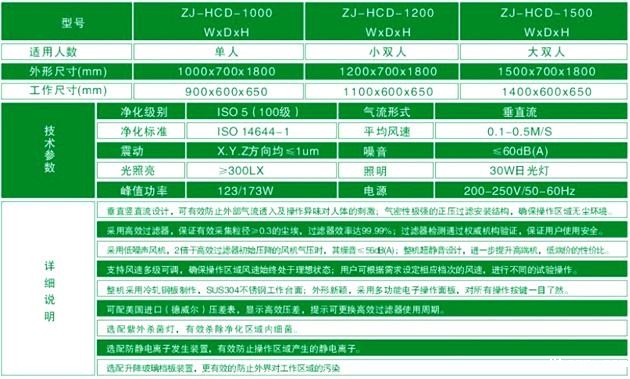 垂直流洁净工作台特点: 洁净度CLASS100符合ISO1466-1标准 ; 采用可调风量低噪声风机系统,保证工作区风速始终处于理想状态; 箱体铜板静电喷涂光亮平整,操作台面为304不锈钢;