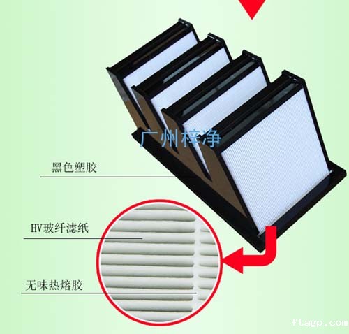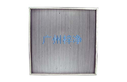 亚高效过滤器采用超细玻璃纤维滤纸或聚丙烯滤纸为滤材,经密摺而成。亚高效过滤器密摺的滤纸由纸隔板或铝箔隔板做成的小插件间隔,保持流畅通道,外框为镀锌板、不锈钢板或铝合金型材,用新型聚氨酯密封胶密封。