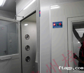 采取自动感应方式启动风淋,定时器计时结束吹淋,(双门采用电动联锁);在内部置紧急停止按钮,按下急停按钮,双门均可打开;停电时双门均可打开。