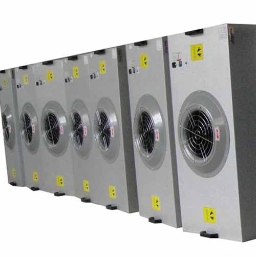 风机从FFU顶部将空气吸入,经初效过滤器,高效过滤器过滤,过滤后的洁净空气在整个出风面以0.45m/s±20%的风速匀速送出到洁净棚内。形成均流层,使洁净空气气流呈垂直单向流,从而保证了工作区内所要求的洁净度。