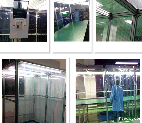 2、防静电垂帘:四周围用防静电垂帘(或钢化玻璃),防静电效果好、透明度高、网格清晰、柔韧度好、不变形、不易老化;