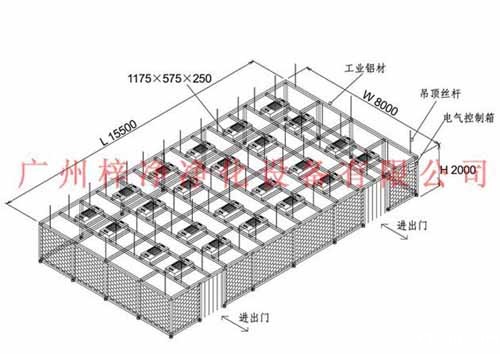 :,采用新加坡离心风机,具有长寿命、低噪声、免维护、震动小、可无级变速等特性,风机质量可靠,工作寿命长,加上独特的风道设计,大大提高了风机的效率、降低了噪声!内部净化级别可达100-100K级;特别适用于车间内局部净化级别要求高的区域,如流水线作业区域。