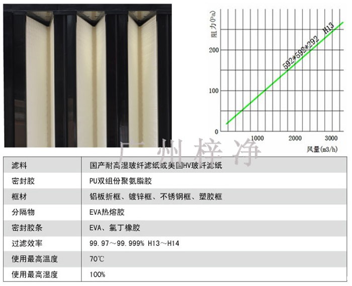 大风量带法兰高效过滤器:箱式又称组合式高效过滤器,采用无隔板设计,形成”V”字型结构,箱式对细小颗粒物质具有极好的过滤效率,带法兰高效空气过滤器主要捕捉0.3um的空气尘埃粒子,过滤效率99.99%。带法兰纸隔板高效过滤器设计大风量可达到4200 m3/h,主要用在大风量的环境使用。带法兰高效过滤器主要适用于制药厂、医院手术室、半导体厂、微电子厂、以及其它任何需要严格控制空气污染的房间。