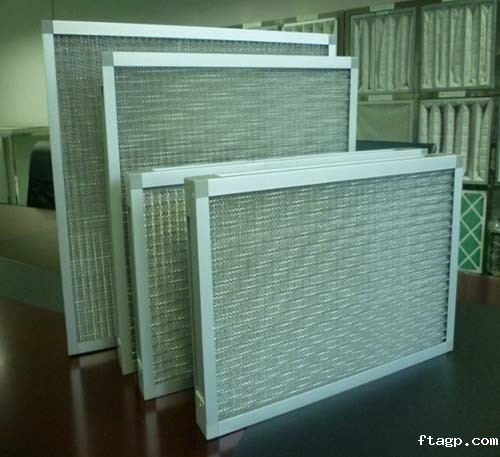 金属粗效空气过滤器也叫金属粗效空气过滤网和金属网过滤器,金属网粗效空气过滤器是用多层的扩张铝箔网或不锈钢纺织网为过滤网的专用材料,经转压成波浪形,以正确的角度彼此交叉叠合排列,空气通过网目时多次改变流动方向;并以不同的密度、孔径由粗到细的排列,使中间体可产生静电的高效率空气过滤器,达成对气流的低阻力,增加其集尘能力及效率。不论是铝质滤网或不锈钢滤网,均具安全、坚固、耐高温的特性,且容易清洗及保养,长期使用更可降低整体空气过滤器的使用成本。