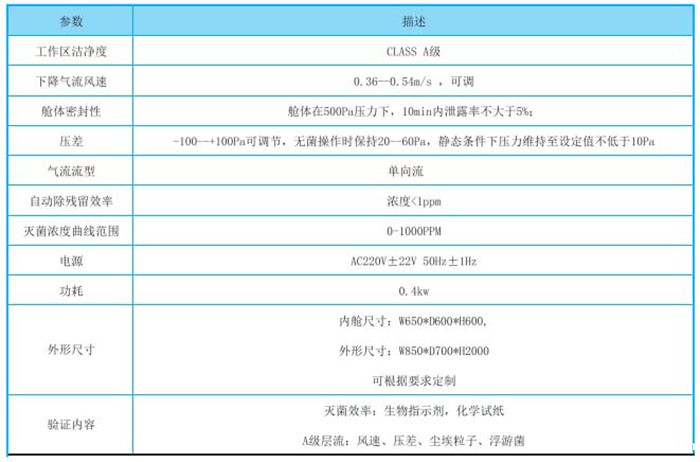 气化过氧化氢灭菌传递窗-VHP灭菌传递窗-消毒灭菌传递窗性能参数:
