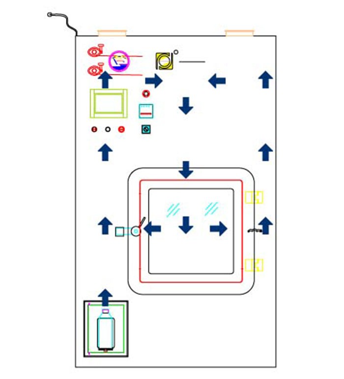 6、门互锁功能,处残留结束后只能开启洁净级别门,采用充气密闭门,保证密封性。