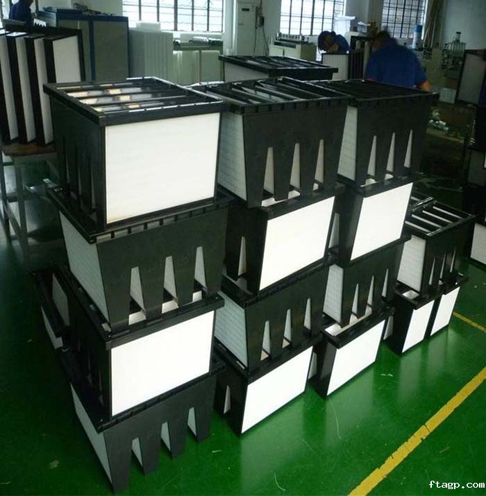 V型高效空气过滤器又称W型高效过滤器,箱式高效过滤器,W型V型组合式高效过滤器,V型W型高效空气过滤器采用无隔板设计,形成“V”或者“W”字型结构,采用低阻力超细玻纤滤纸制成,结构紧凑合理,有效过滤面积大,可在高风速下运行,V型W型高效空气过滤器适用于送风空调设备的末端、排风净化系统的负压端和通风管道中。