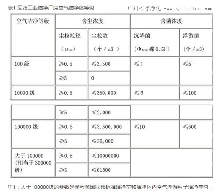 注1:大于100000级的参数是参考美国联邦标准洁净室和洁净区内空气浮游粒子洁净等级;