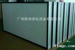 3、高效过滤器分为有隔板高效过滤器和无隔板高效过滤器,有隔板高效过滤器包括GK(有隔板高效过滤器),GKW(耐高温高效过滤器),GKA(耐高湿高效过滤器);无隔板高效过滤器包括GKYW(组合式组合式高效过滤器),GKYS(无隔板高效过滤器),GKYC(液槽无隔板高效过滤器),GKYL(超低阻无隔板高效过滤器),GKYD(刀架式无隔板高效过滤器),GKUL(0.1um超高效过滤器)。是用超细玻璃纤维作滤料,胶板纸、铝泊作分隔板,与木框或铝合金框胶合而成,具有过滤效率高、阻力小、风量大的优点,广泛应用于各种局部净化设备和洁净厂房。